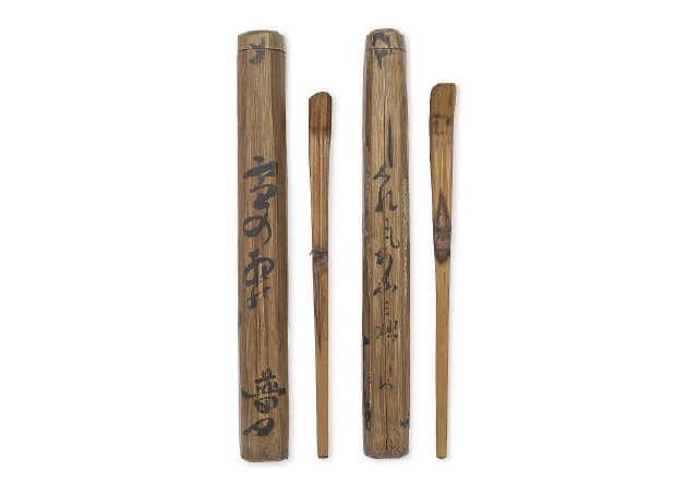 雪の夜の/L19.3cm しくれにも/L19.8cm 各イタミ 各共筒(各筒にイタミ) 柳卓箱 玄々斎外箱(箱は駒沢利斎)
