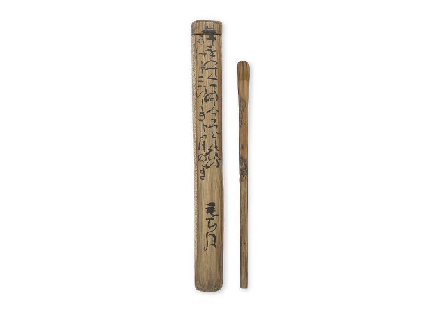 L17.3cm 共筒(筒にイタミ) 箱付 古筆了延極札