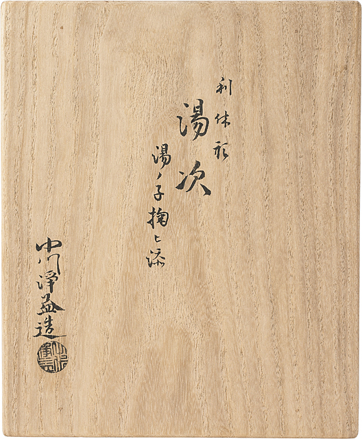 湯次/H19.4×W21.8(把手含む)cm 把手に刻銘「中川浄益造」 湯の子掬い/L20.9cm 柄に刻銘「浄益造」 共箱