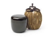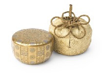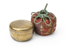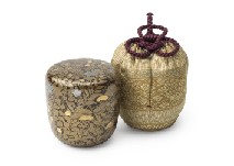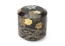 H8.7×W7.2(各)cm 蒔絵笠竹透文箱 外箱付 各仕覆付