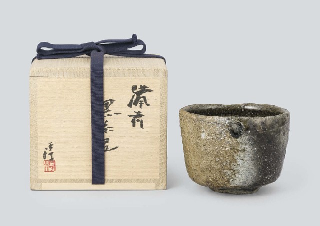【Lot1038】 備前黒茶碗 銘 不老