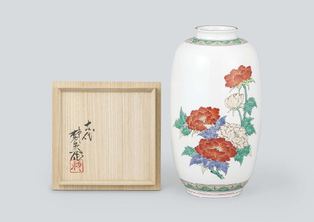 【Lot1075】 濁手牡丹文花瓶