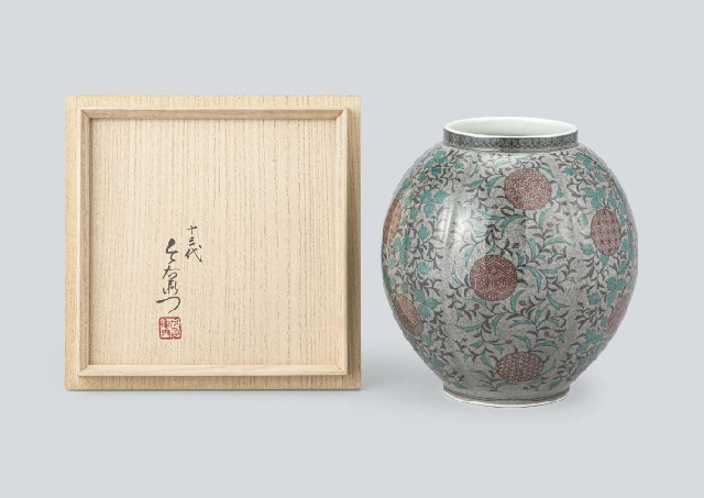 【Lot1109】 色絵薄墨草花更紗文花瓶