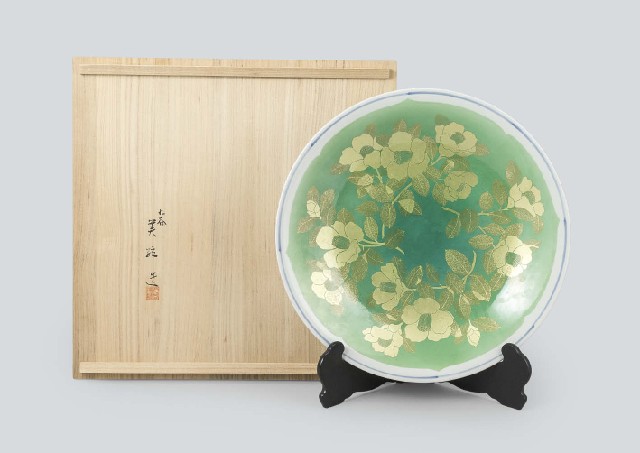 【Lot1171】 釉裏金彩切箔椿文飾皿