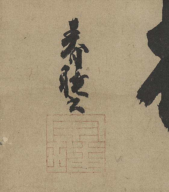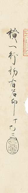 紙に墨 落款と印有 軸装 16.3×71.4(紙)cm 全体/104.2×79.2cm イタミ、直し 箱付(箱にイタミ) 古筆了意極札(イタミ)