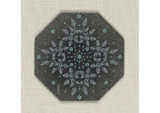 【Lot0448】 色絵薄墨墨はじき雪文陶額