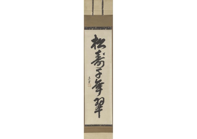 紙に墨 落款と印有 軸装 107×30.8(紙)cm 全体/188.7×39.6cm 共箱