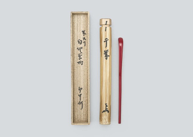 【Lot0064】 朱ヌリ自作茶杓 銘 千歳