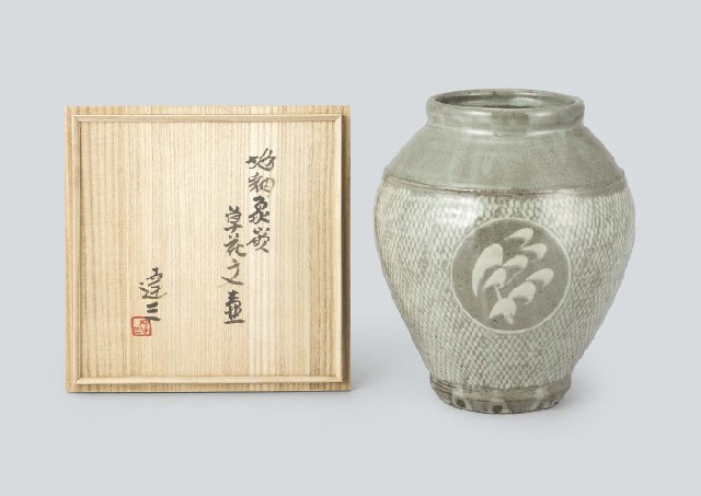 【Lot0658】 地釉象嵌草花文壷