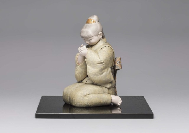 1966(昭和41)年 H22.8×W13.8×12.8cm 右足に刻銘「郷陽作」 所々にシミ 共箱 木製台座付 文献:「平田郷陽人形作品集」(講談社刊 1972年) No.73に掲載 「人間国宝シリーズ36 平田郷陽」(講談社刊 1978年) No.16に掲載