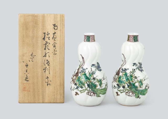 【Lot0936】 南画寫意捻瓢形徳利 壱對