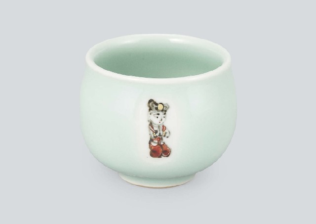【Lot0973】 青磁豆彩曼荼羅ぐい呑