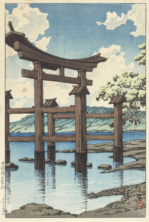 木版 36.5×23.7cm 落款と印共に版上 マージンに「ワタナベ」の印 シート全体にヤケ、数ヶ所にシミ、シワ、ヤブレ、小さな紙の剥離、修復
