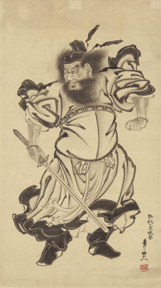 弘化乙巳(1845年) 紙本・水墨 68.2×38.7cm 落款と印有 軸装 画面全体に薄いヤケ、数ヶ所にシミ 箱付