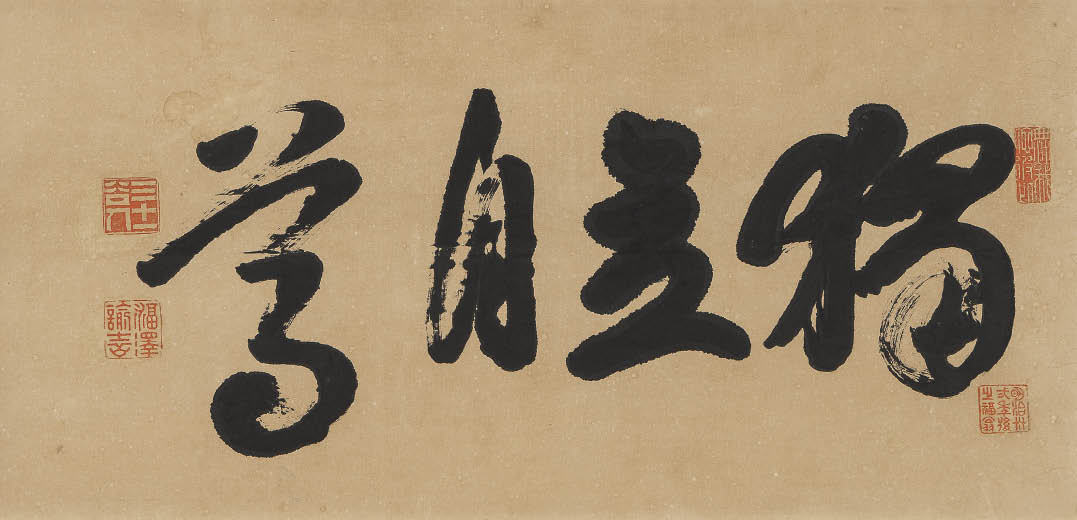 紙に墨 33.5×68.7cm 印有 画面全体にヤケ、所々にシミ、数ヶ所にヨゴレ、コスレ 額付