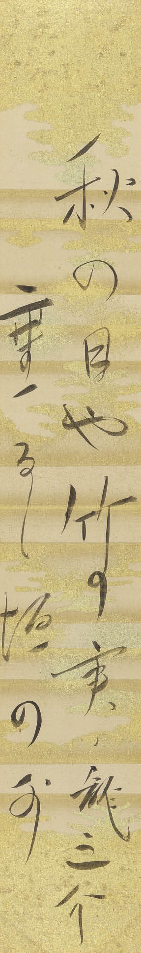 短冊に墨 36.2×6(短冊)cm 落款有 画面全体にヤケ、数ヶ所にわずかなシミ、一辺にわずかなシワ 額付
