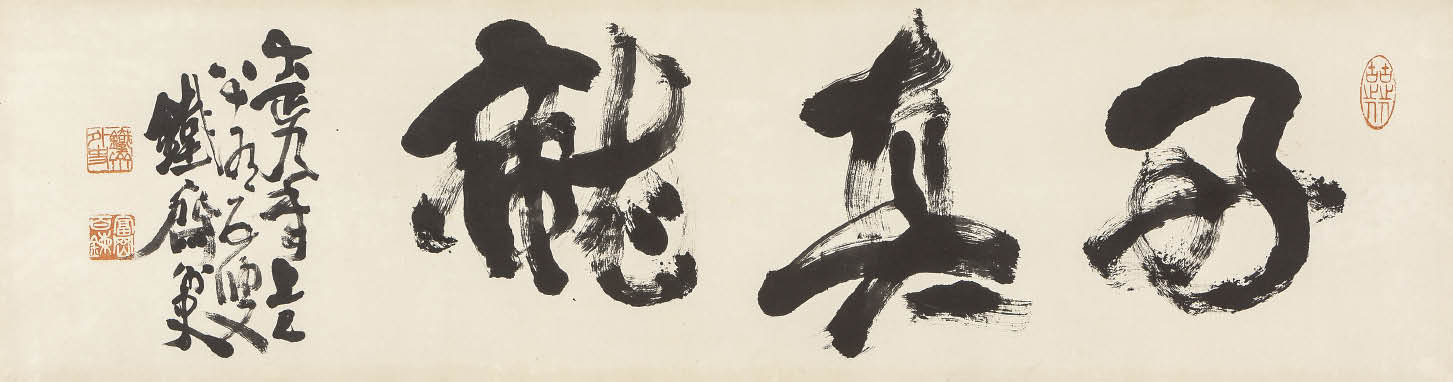 大正9年(1920年) 紙に墨 33×124cm 落款と印有 画面全体にヤケ、数ヶ所にシミ、虫食い 額付