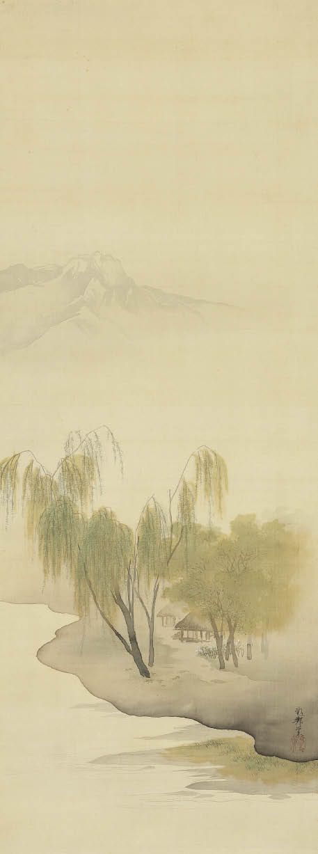 絹本・彩色 109.2×41.6cm 落款と印有 軸装 画面全体に薄いヤケ、数ヶ所にシミ 「橋本秀邦」鑑題箱