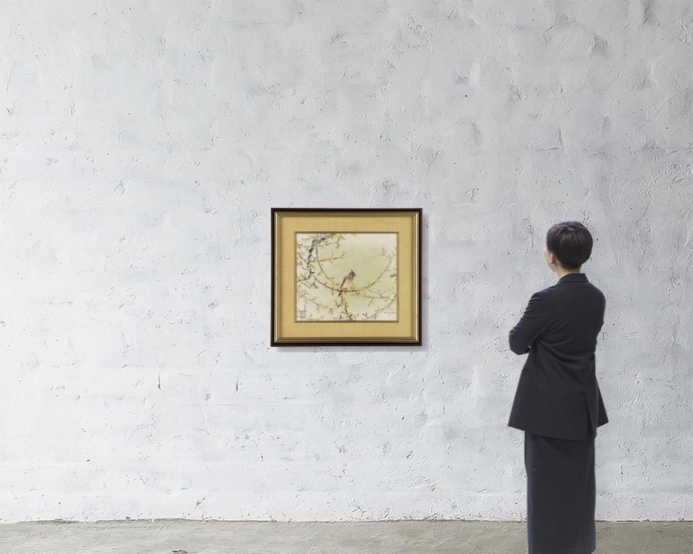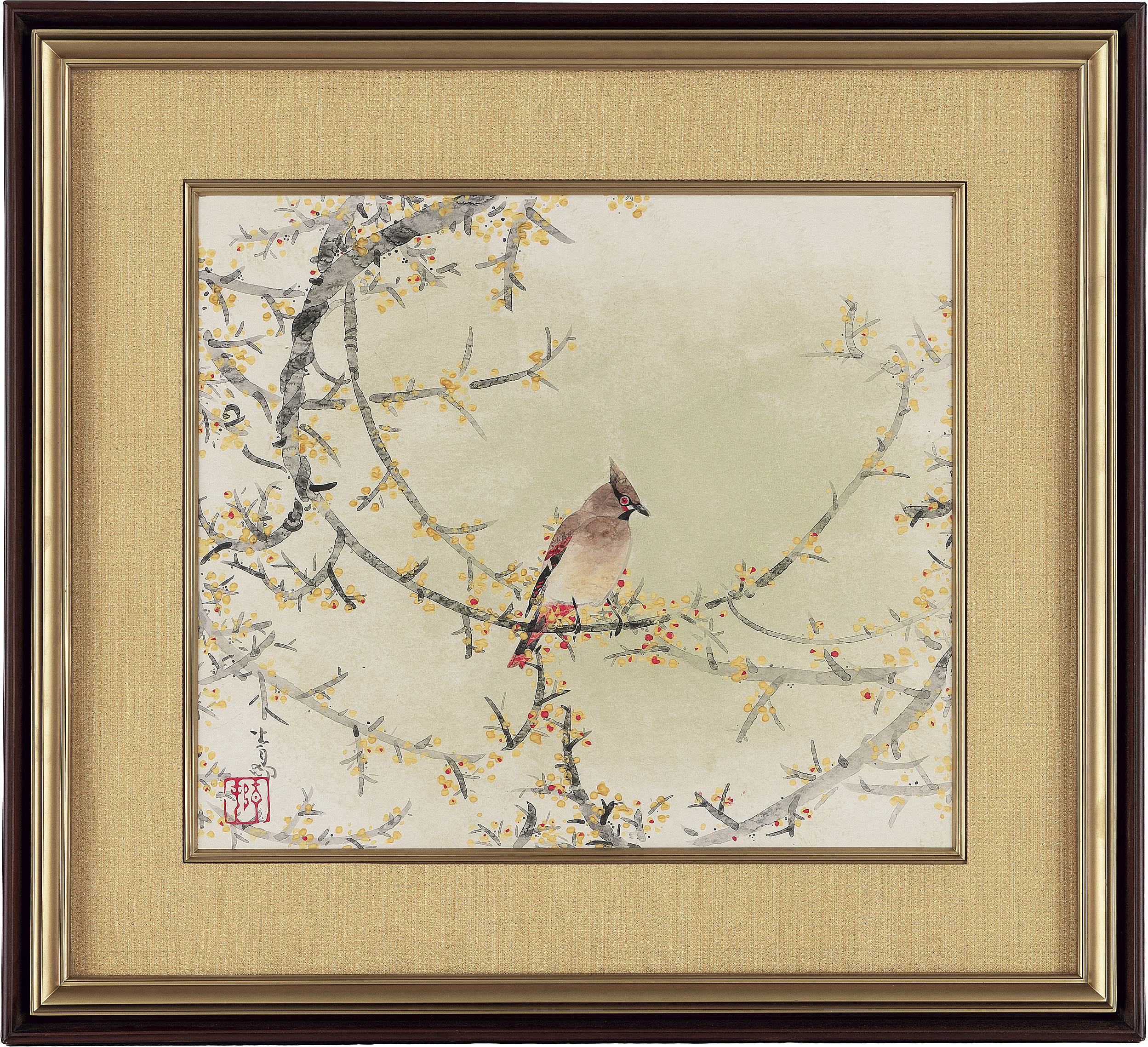 紙本・彩色 47.3×54.8cm(10号大) 落款と印有 画面数ヶ所に浅いヒビ、1ヶ所に小さな剥落 共箱 額付
