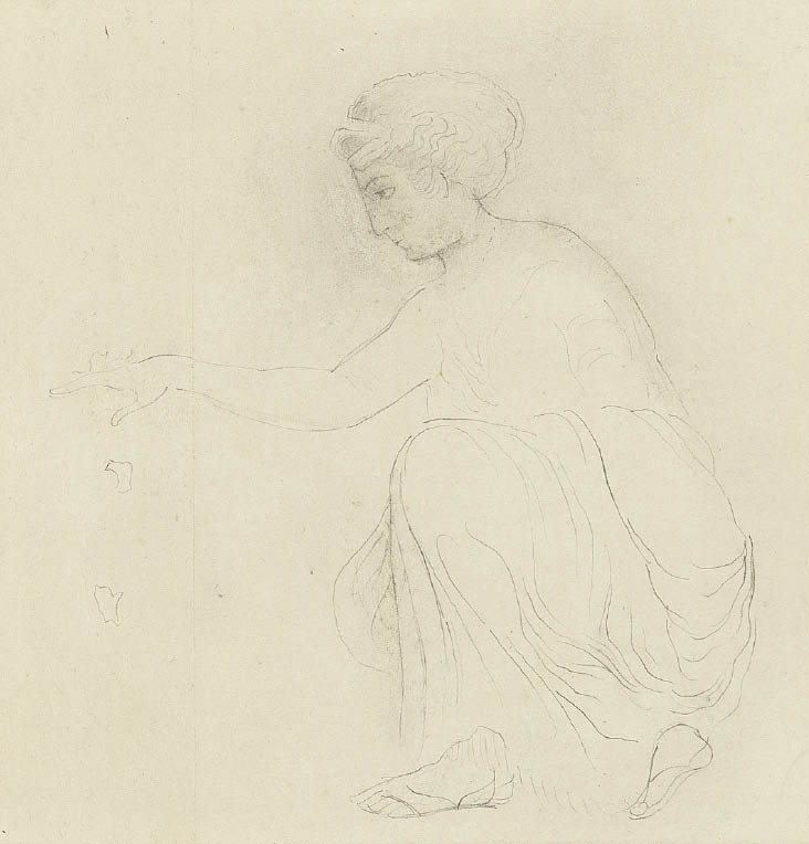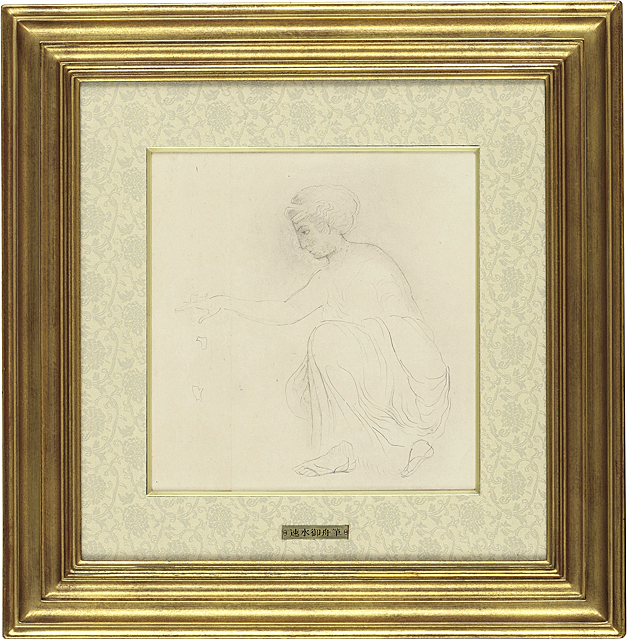 紙に鉛筆 23×22.5(紙)cm 「吉田幸三郎」鑑題シール 紙とパネルによる裏打ち 画面全体にヤケ、数ヶ所にシミ 額付