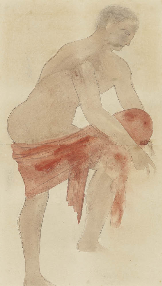 紙に水彩 40.8×23.2(紙)cm 「吉田幸三郎」鑑題シール 紙とパネルによる裏打ち 画面全体にヤケ、数ヶ所にシミ、コスレ 額付