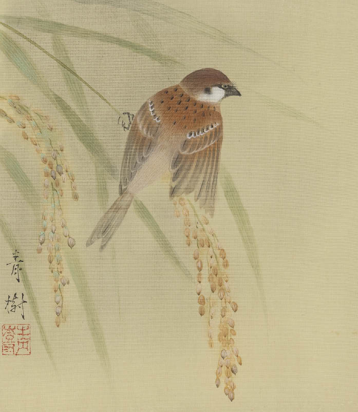 絹本・彩色 23.3×20.6cm 落款と印有 軸装 画面全体に薄いヤケ、数ヶ所に小さなシミ 「富取風堂」鑑題箱