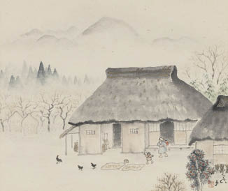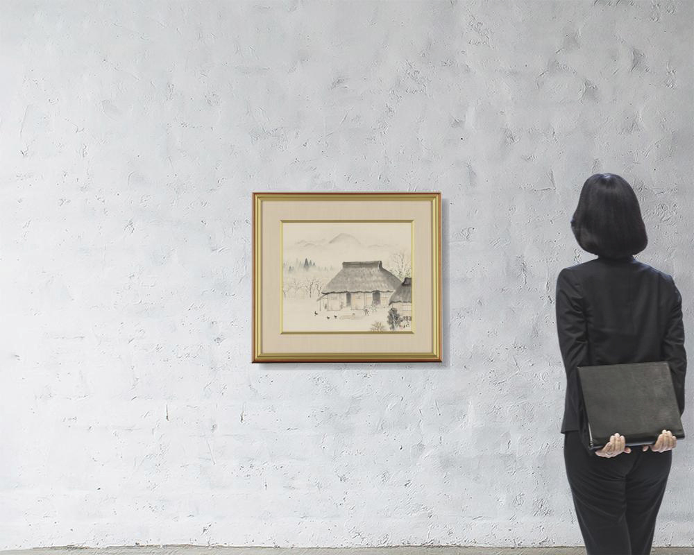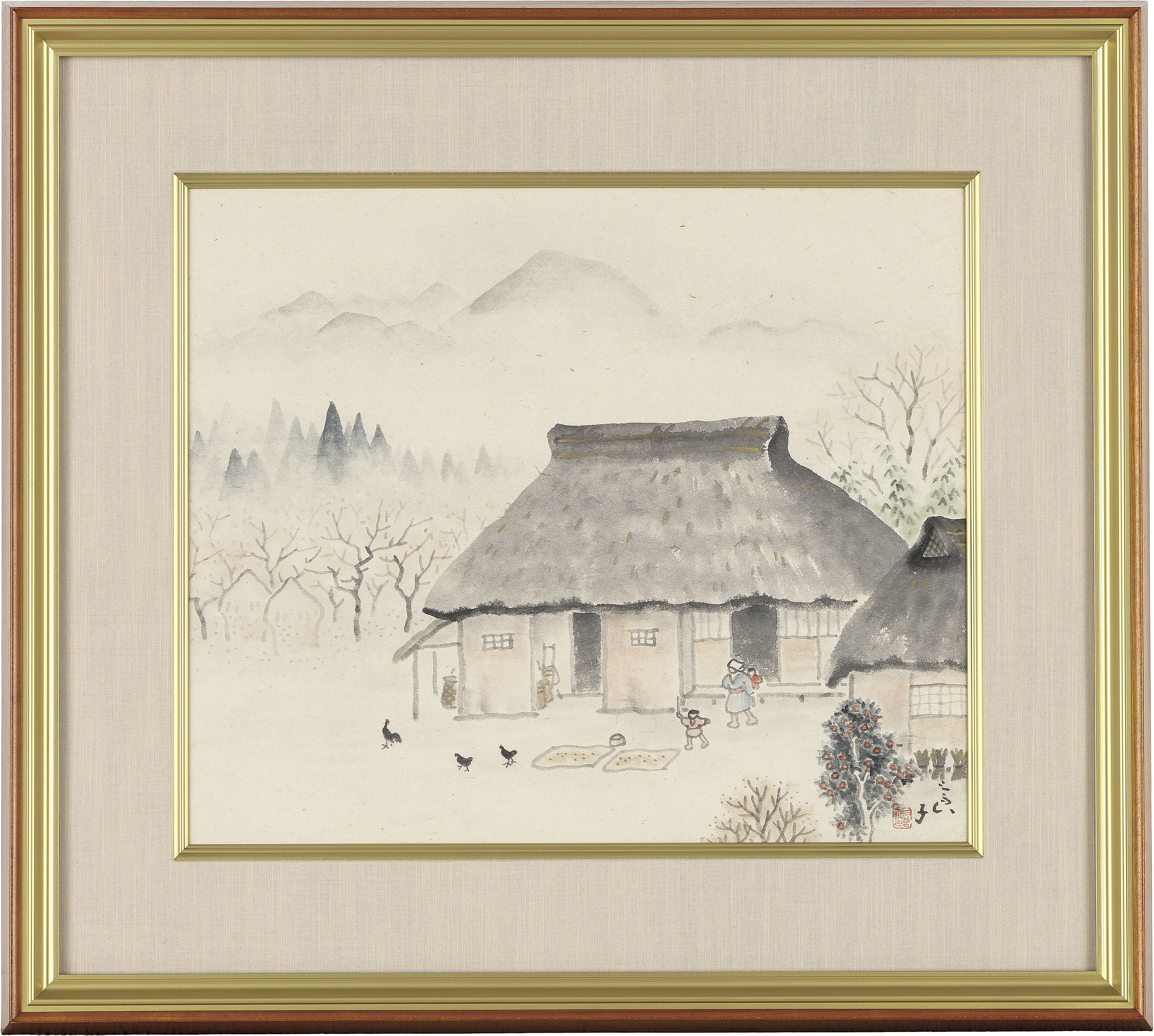 紙本・彩色 43×51cm 落款と印有 画面全体に薄いヤケ、数ヶ所に薄いシミ、1ヶ所に紙の剥離 共板付 額付