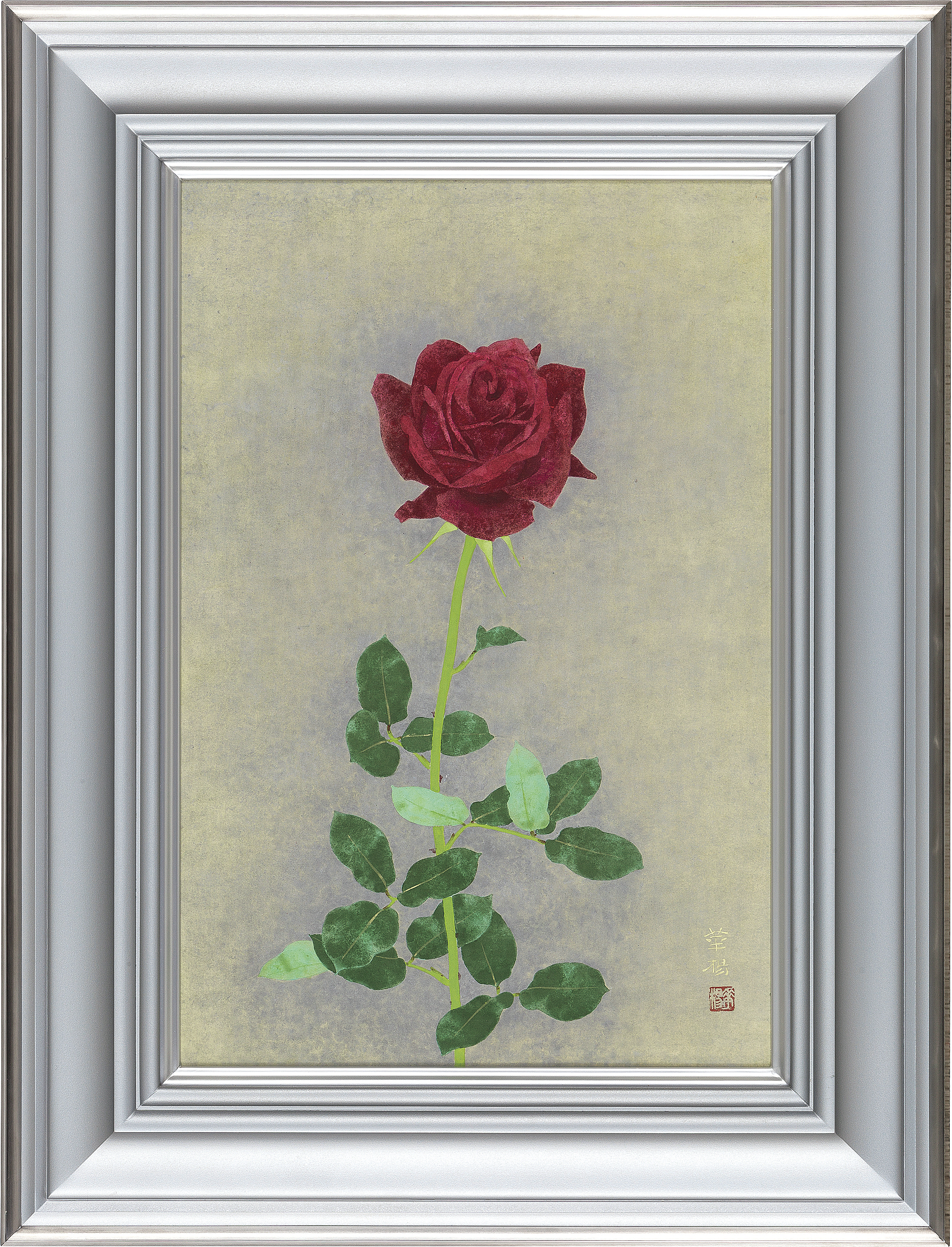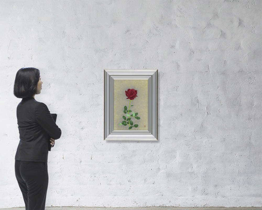 紙本・彩色 10号 落款と印有 画面1ヶ所に薄いシミ 共箱 額付