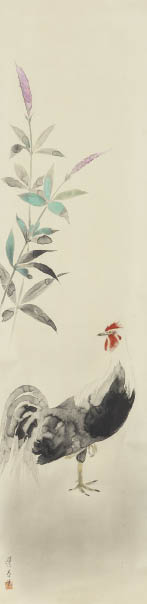 紙本・彩色 126×31.3cm 落款と印有 軸装 共箱