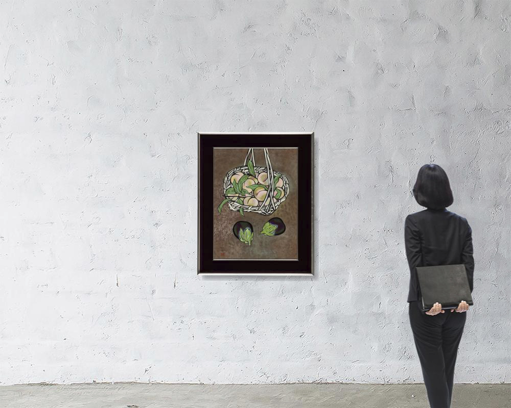 1961年 紙本・彩色 79.5×59(額窓)cm 落款と印有 画面数ヶ所にシミ 共箱 額付*