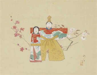 絹本・彩色 40×52cm 落款と印有 軸装 画面全体に薄いヤケ、所々にシミ、数ヶ所にわずかなシワ 箱付