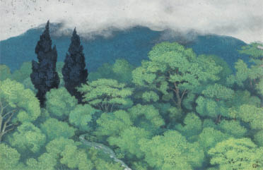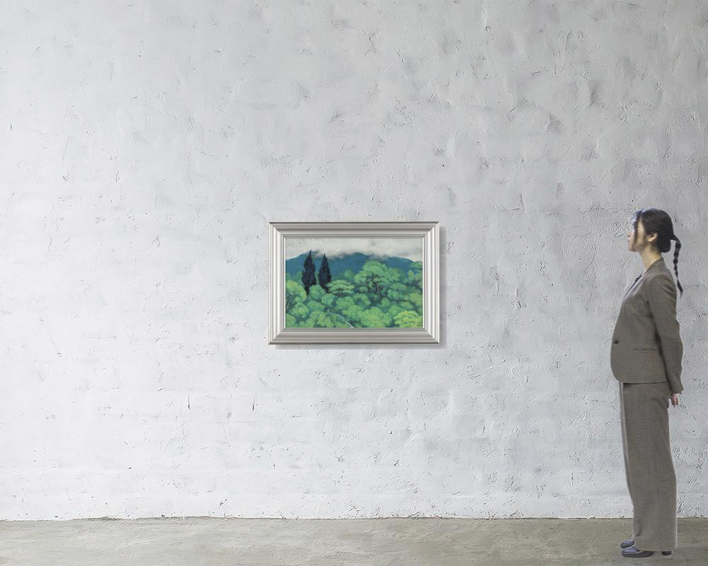 紙本・彩色 30号 落款と印有 共シール 画面所々にシミ、縁沿い数ヶ所にコスレ、剥落 額付