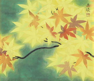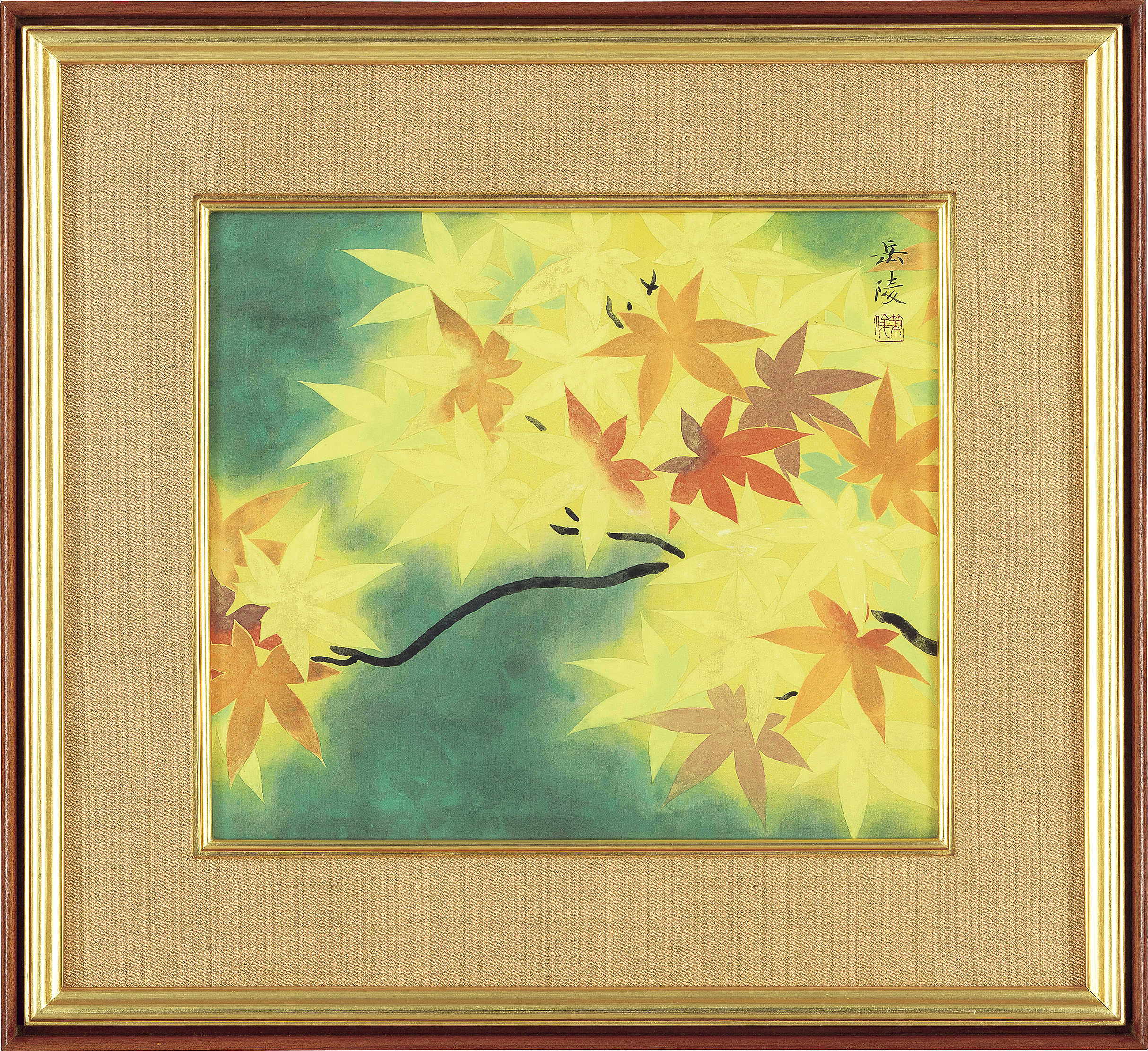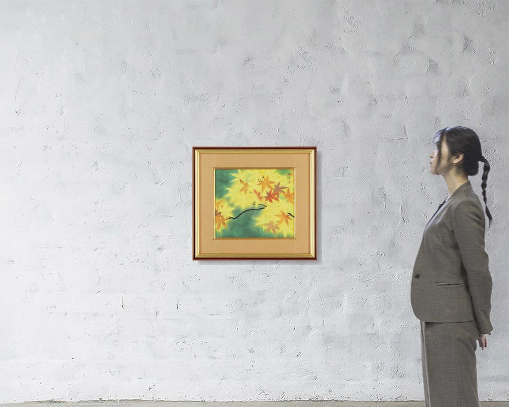 絹本・彩色 6号大 落款と印有 「中村渓男」鑑題シール 画面数ヶ所にコスレ 額付