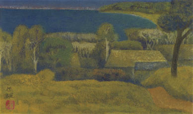 紙本・彩色 28×46.8cm 落款と印有 共シール 額付
