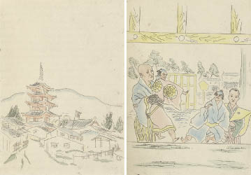 ポール・クローデルの文章に藤田嗣治によるエッチング・アクアチント19点が収められた挿画本 BII.27.157 1927年 24.5×20.2(本)cm 総ed.546部のうち和紙刷り版60部より巻頭にed.の印字 革装丁 和紙刷り チャイナアップリケ スイート1組欠落 いずれもシート全体に薄いヤケ 数枚のシート数ヶ所にシミ、ヨゴレ マージン数ヶ所にわずかなシワ