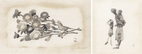 紙に水彩 11.3×15.2~13.6×17.5(紙)cm 全てにサイン いずれも画面全体にヤケ、数ヶ所にシミ 1点の画面所々にシミ、数ヶ所にシワ、縁沿い数ヶ所に小さなヤブレ 全て額無