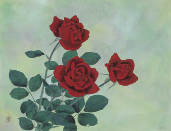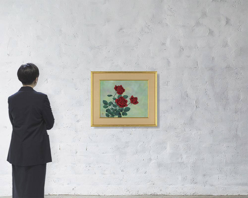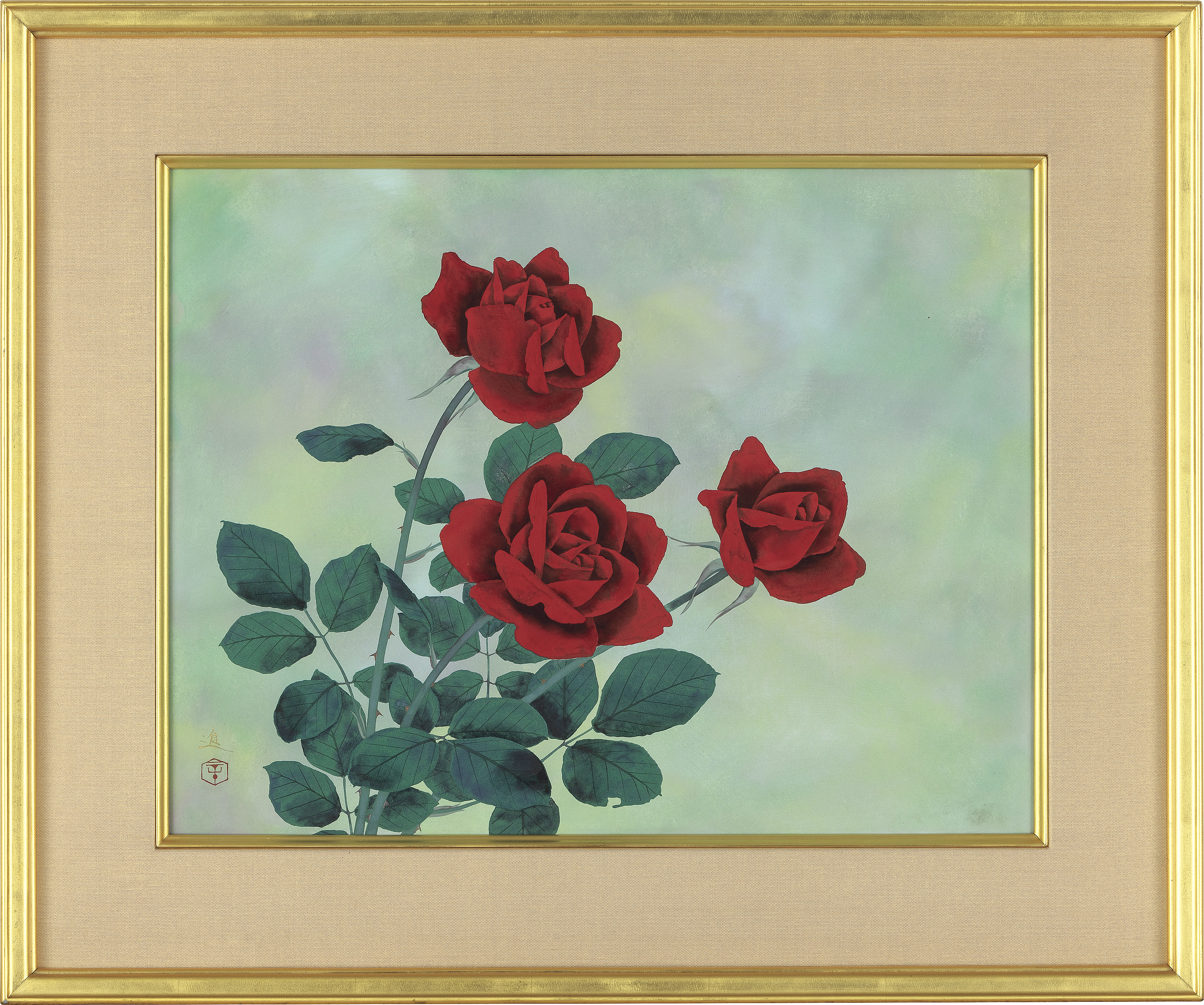 紙本・彩色 10号 落款と印有 共シール 画面縁沿い1ヶ所にヨゴレ 額付