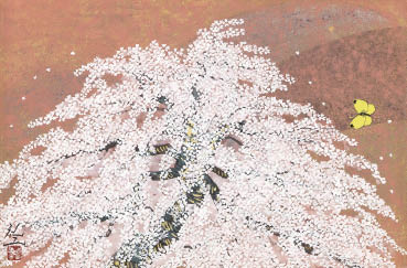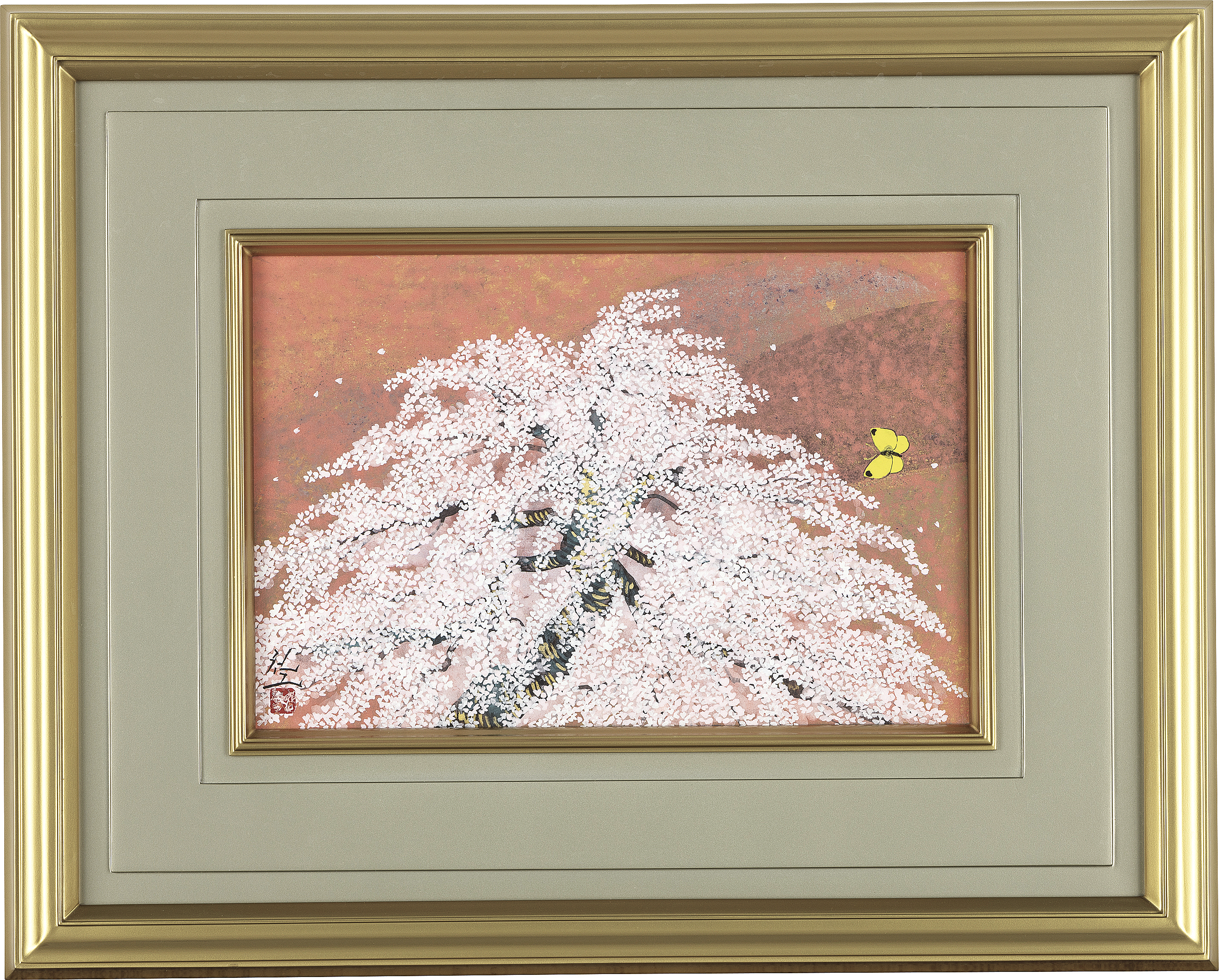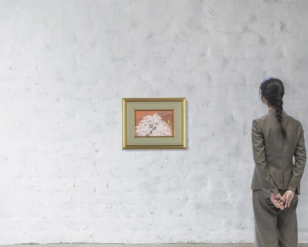 紙本・彩色 4号 落款と印有 共シール 額付