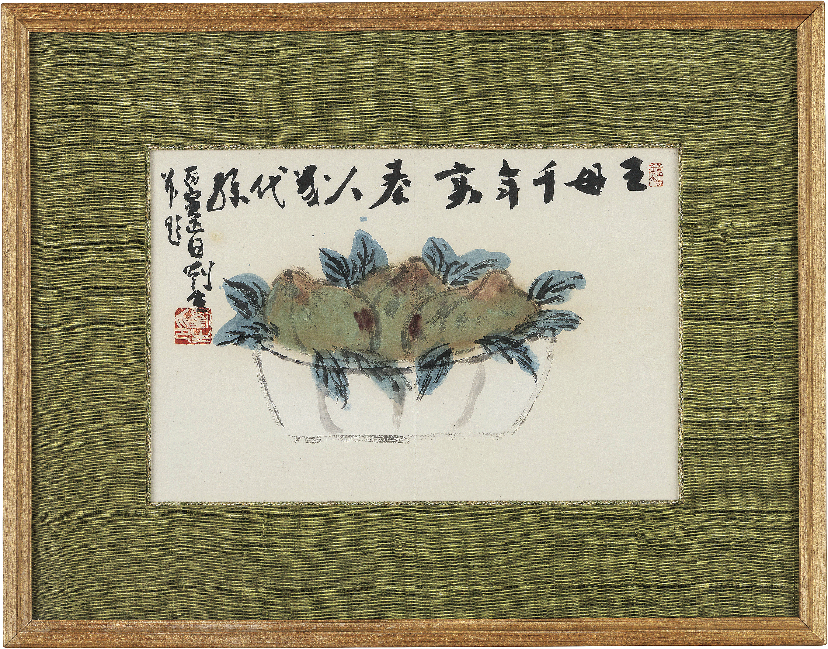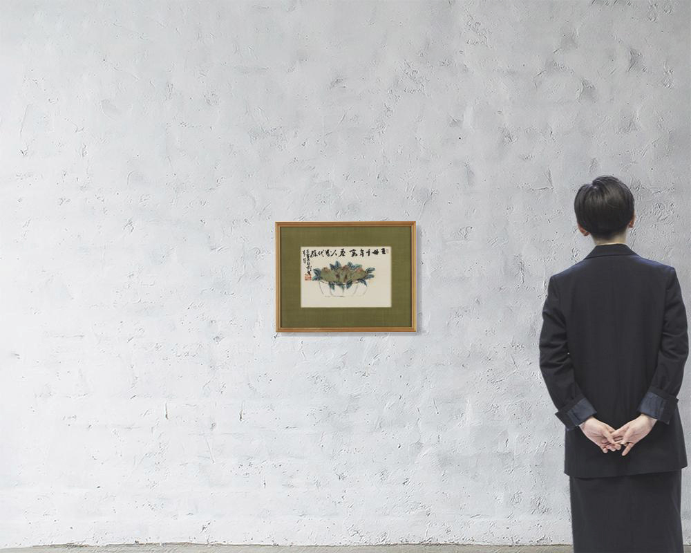 丙寅(1926年) 紙本・彩色 24×35.8cm 落款と印有 画面に中折れ 画面全体にヤケ、数ヶ所にシミ、虫食い 額付