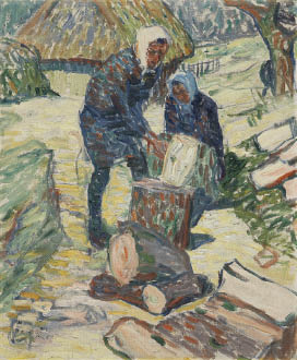 1915年 キャンバスに油彩 59.4×49cm サイン有 画面所々にヒビ、数ヶ所に小さなシミ、小さな剥落 額付