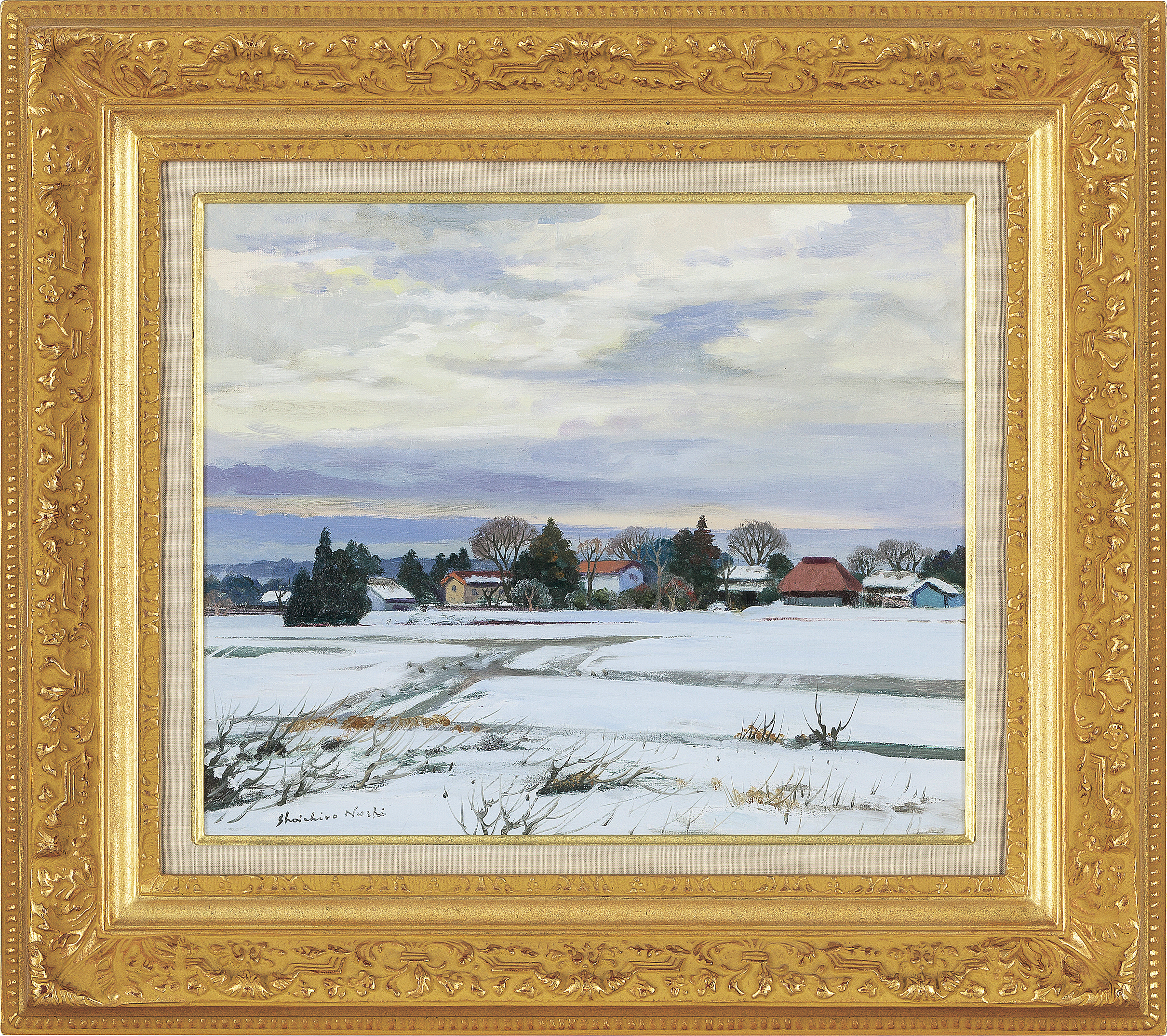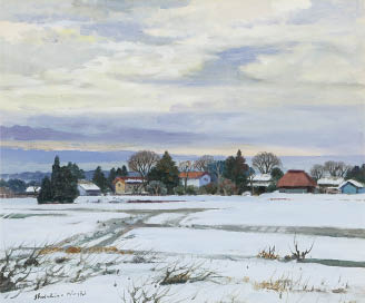 キャンバスに油彩 F8号 サイン有 キャンバス裏にもサイン、タイトル 「日動画廊」シール 額付
