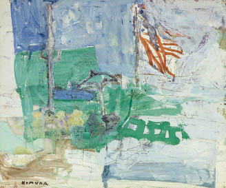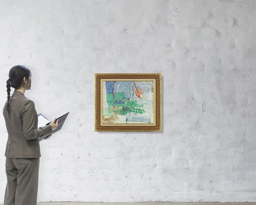 キャンバスに油彩 46×55cm(仏F10号) サイン有 キャンバス裏木枠にタイトル、「GALERIE KRIEGEL」シール 画面所々に絵具の縮み、ヒビ、数ヶ所にニスの変色 額付