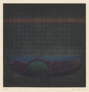 中央公論No.74 1959年 カラーメゾチント 19.5×19.5cm サイン有 ed.150 版面及びマージンに薄いヤケ 額付*