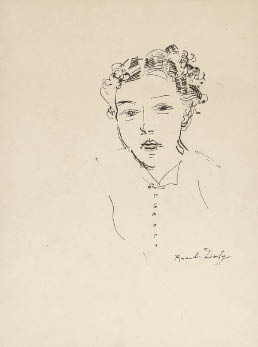 1940年頃 紙に墨 66×50.2(紙)cm サイン有 「THE PARK AVENUE GALLERY, INC.」シール 「The Fauves-Wild & Tame Examples」(ROLLY-MICHAUX、1976年)出展作品シール 画面全体に薄いヤケ、所々にシミ、数ヶ所にシワ 額付