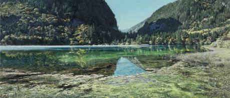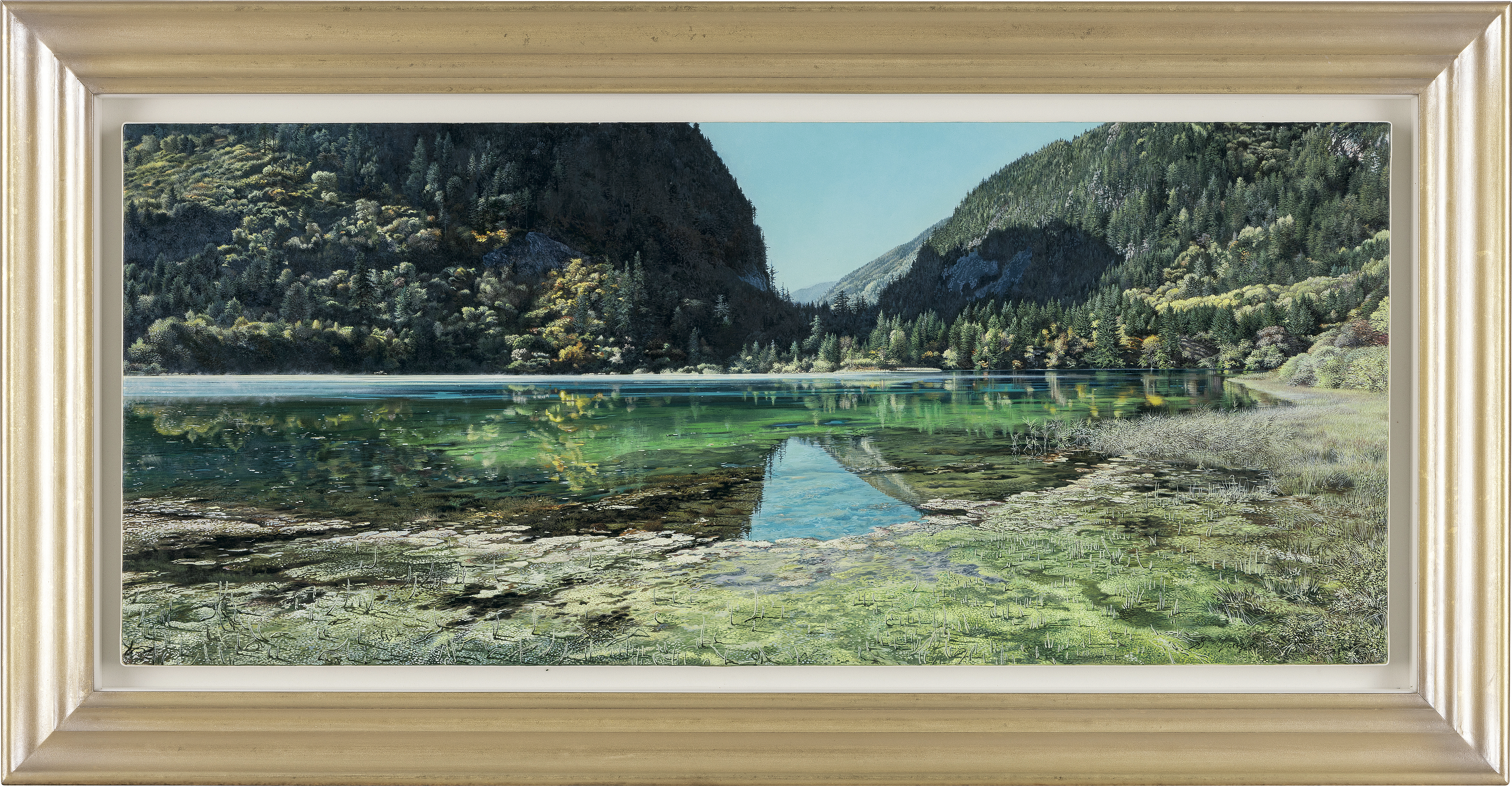 2014年 パネルに貼付したキャンバスに油彩 39×91cm(変形30号) サイン有 パネル裏に貼付した紙にもサイン、タイトル、年記 額付
