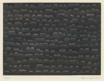 中央公論No.61 1957年 カラーメゾチント 14.4×19.4cm サイン有 ed.50 シートサイズ 28×35cm 版面及びマージンに薄いヤケ マージン及び裏面数ヶ所にシミ、わずかなヨゴレ 裏面全体にヤケ、四辺にテープの剥し跡 額付