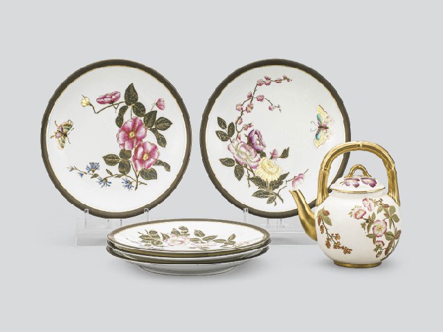 1886・1888年 ティーポット/H17cm 皿5点/D23.5cm 各底部に窯印