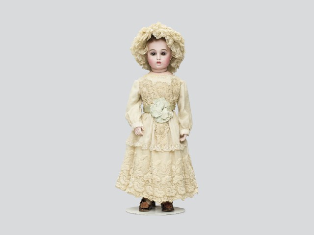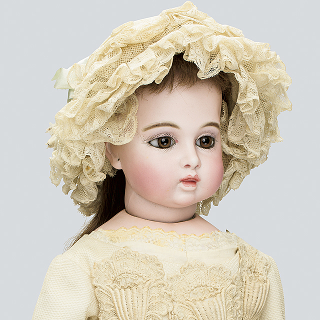 H49.5cm ビスクヘッド(◎ BRU JNE 6の刻印) ブラウンセットアイ クローズマウス ショルダープレート キッドボディ ビスクハンド ウッドレッグ 左足先にイタミ