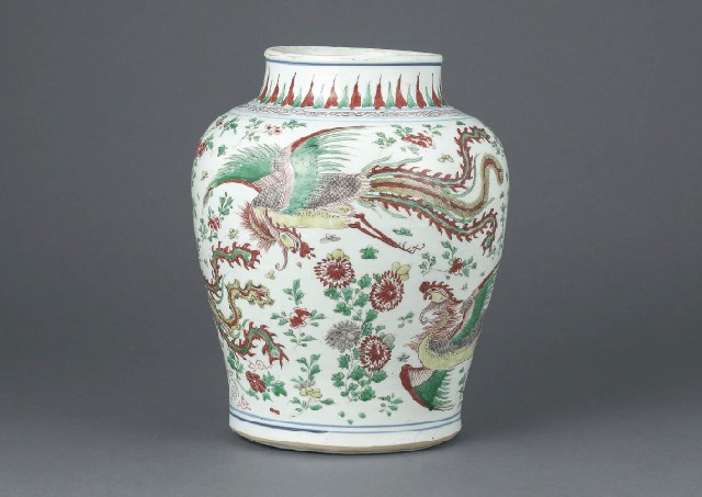 【Lot0122】 五彩草花鳳凰文壷