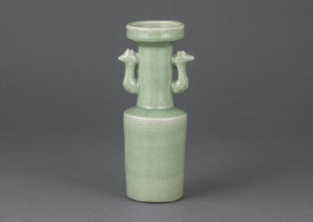 【Lot0134】 龍泉窯青磁鳳凰耳花瓶